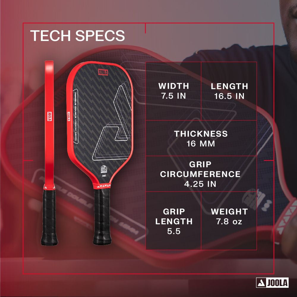 JOOLA Perseus Double Vision 16mm Pickleball Paddle Technical Specifications